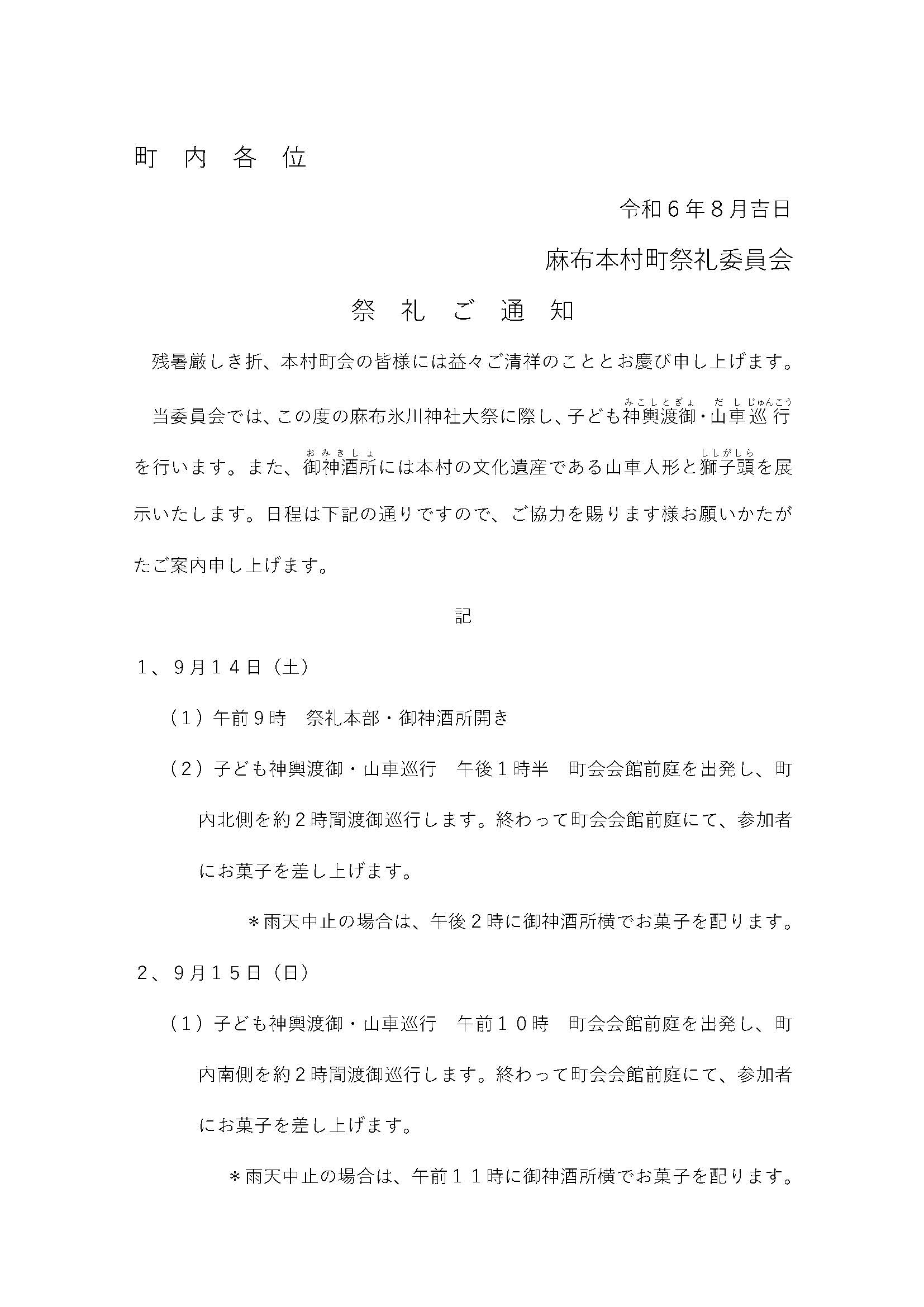祭礼のお知らせ